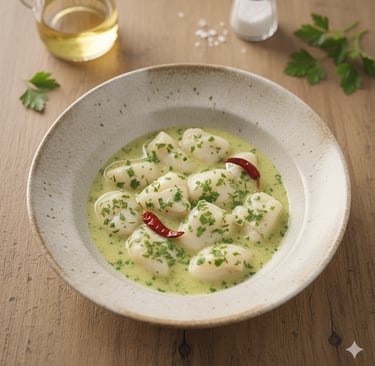 The Merluza en Salsa Verde (Hake in Green Sauce) is a dish of stunning simplicity and deep cultural importance. While it is enjoyed across the Spanish Cantabrian coast, its most refined version hails from the Basque Country, specifically the fishing ports around Bizkaia (Bilbao, Bermeo, Getxo). This recipe relies on a single, magical ingredient: the silky, gelatinous nature of the hake, which forms the creamy emulsion of the 'green sauce' without any cream or flour.