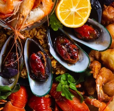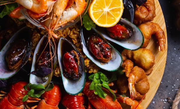 Cook the seafood in salt with salt and laurel for a few minutes, depending on the size and type.