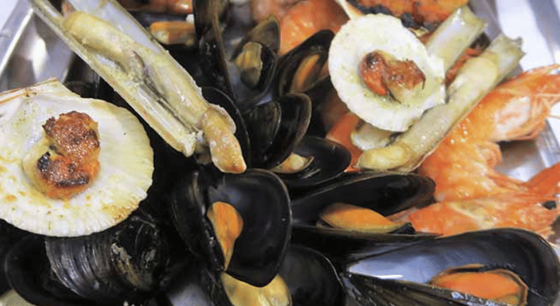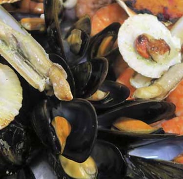 Cook the barnacles for about 5 minutes, the scallops for about 10 minutes, the scallops for about 15 minutes, the oysters for about 20 minutes, the mussels until they open, and the lobster for about 25 minutes.